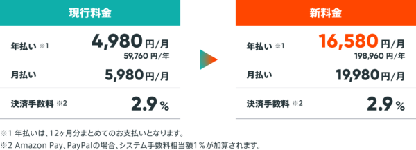 グロースプラン(月額5,980円)が、2024年1月から19,980円に大幅な値上げです。