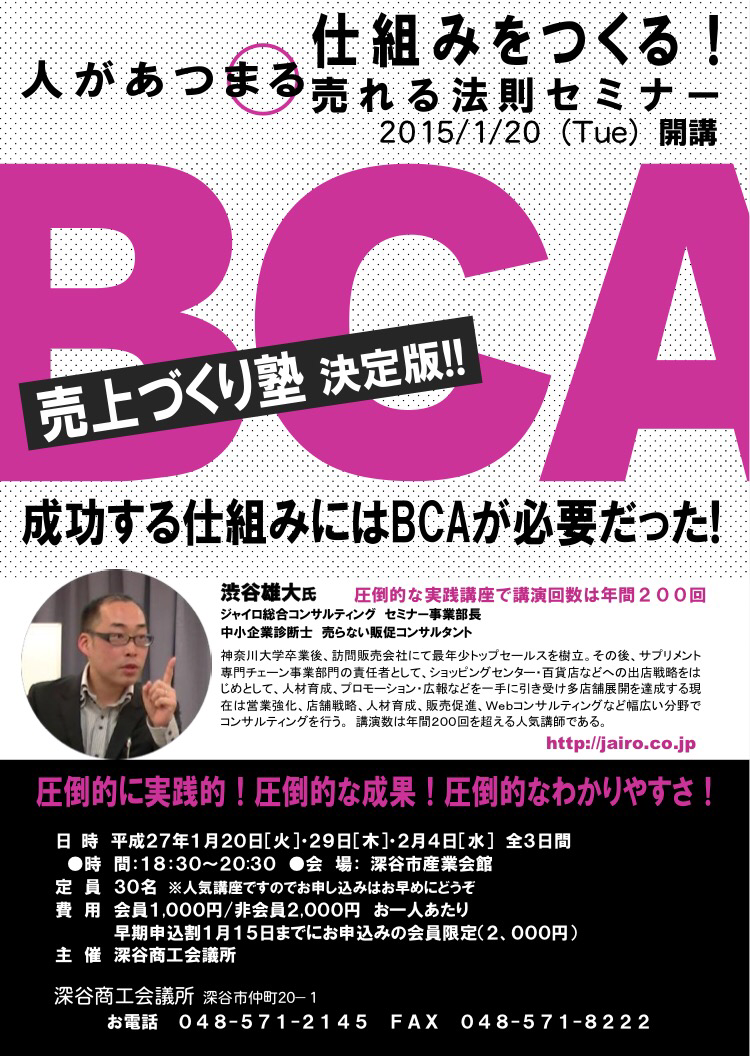 今回の深谷商工会議所の売上アップ塾のテーマはBCA戦略です。