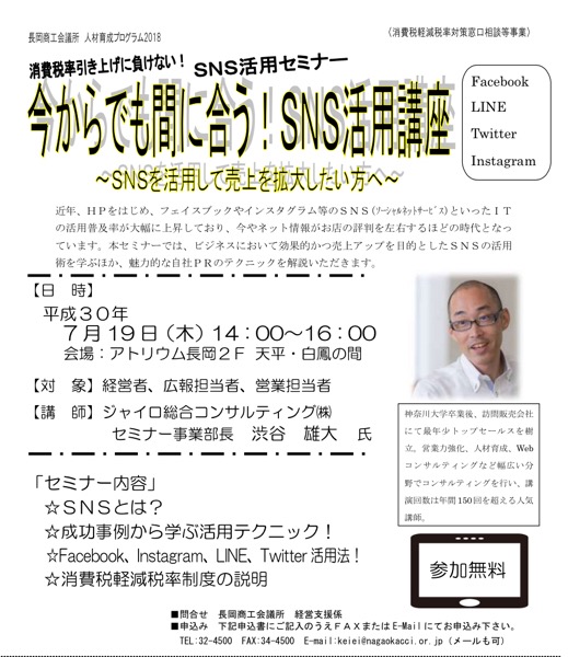 集客方法が変わってきました(今日は長岡でSNS活用セミナー)