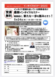 【東京商工会議所墨田支部主催】「インボイスセミナー2023」開催のお知らせ