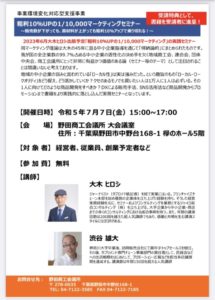 【野田商工会議所主催】「2023年度 粗利10%UPの1/10,000マーケティングセミナー」<事業環境変化対応型支援事業>開催のお知らせ