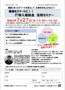【伊勢崎商工会議所主催】「2023年度 IT導入補助金活用セミナー」<制度改正等の課題解決環境整備事業>開催のお知らせ