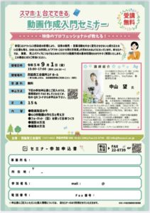 【西脇商工会議所主催】「2023年度 スマホ 1 台でできる!動画作成入門セミナー」開催のお知らせ