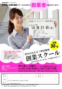 【野田商工会議所主催】「2023年度 創業スクール」開催のお知らせ
