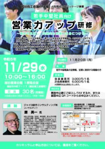 【越谷商工会議所主催】「2023年度 若手中堅社員向け 営業力アップ研修」開催のお知らせ