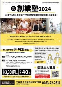 【平塚市役所・平塚商工会議所主催】「創業塾2024」開催のお知らせ