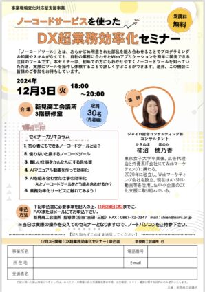【新見商工会議所主催】「2024年度 ノーコードサービスを使ったDX業務効率化セミナー」開催のお知らせ