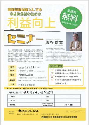 【内郷商工会主催】「2024年度 利益向上セミナー」開催のお知らせ