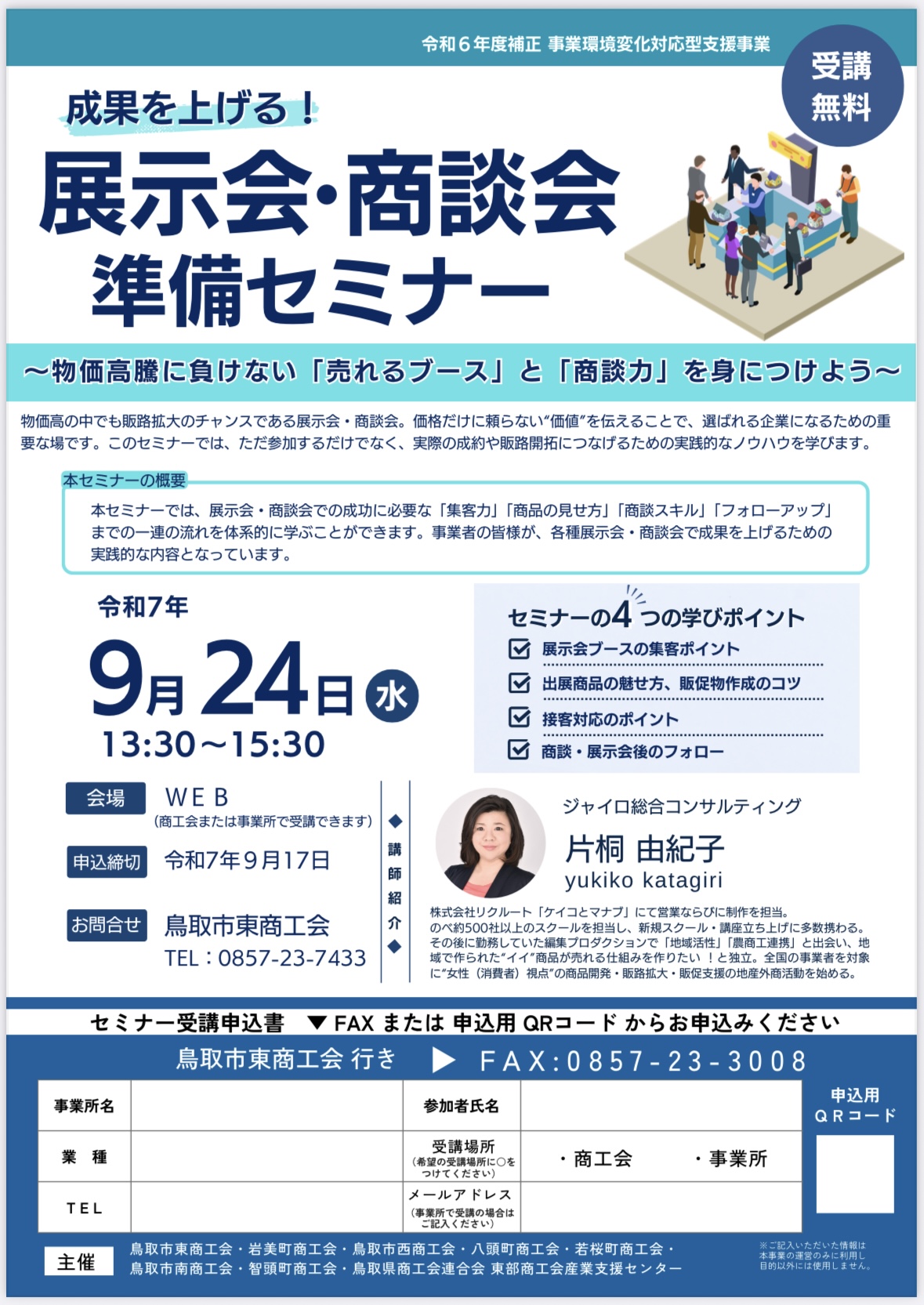 【鳥取県商工会連合会主催】「2025年度 展示会・商談会準備セミナー」開催のお知らせ