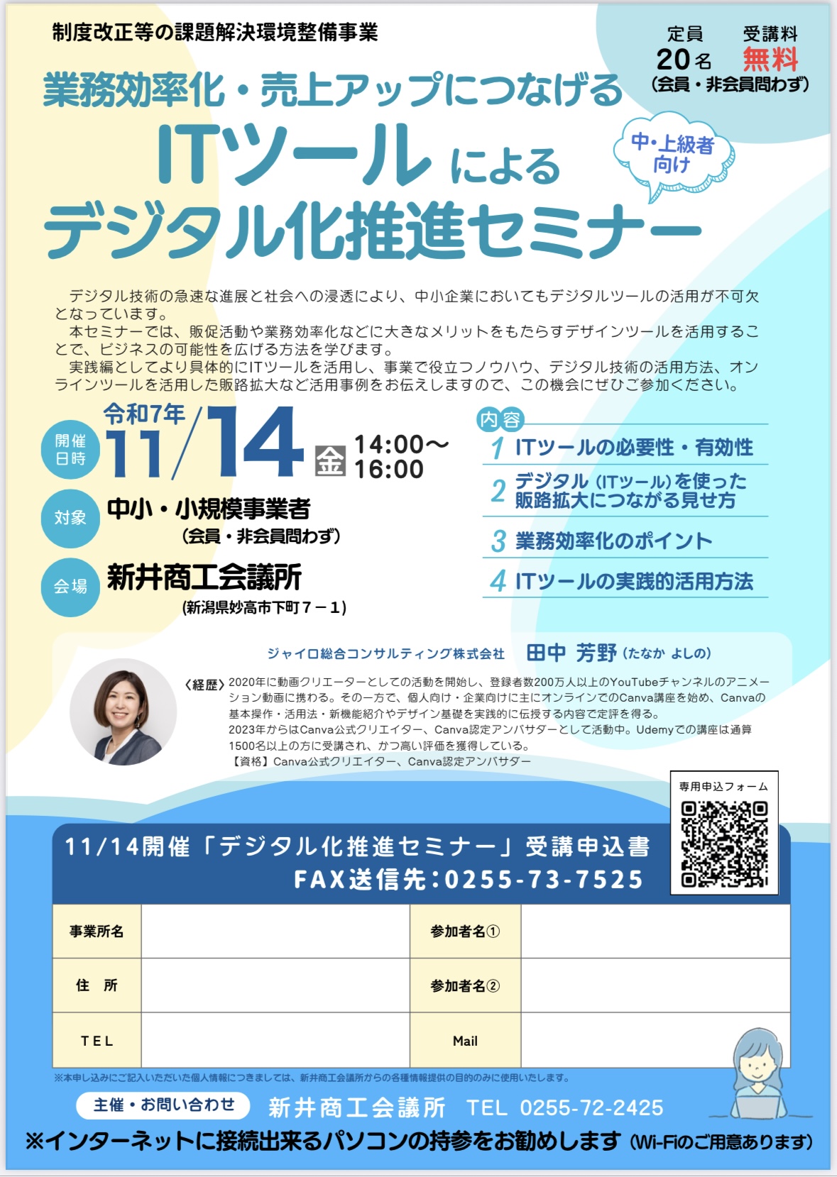 【新井商工会議所主催】「2025年度 ITツールによるデジタル化推進セミナー(中、上級編)」開催のお知らせ