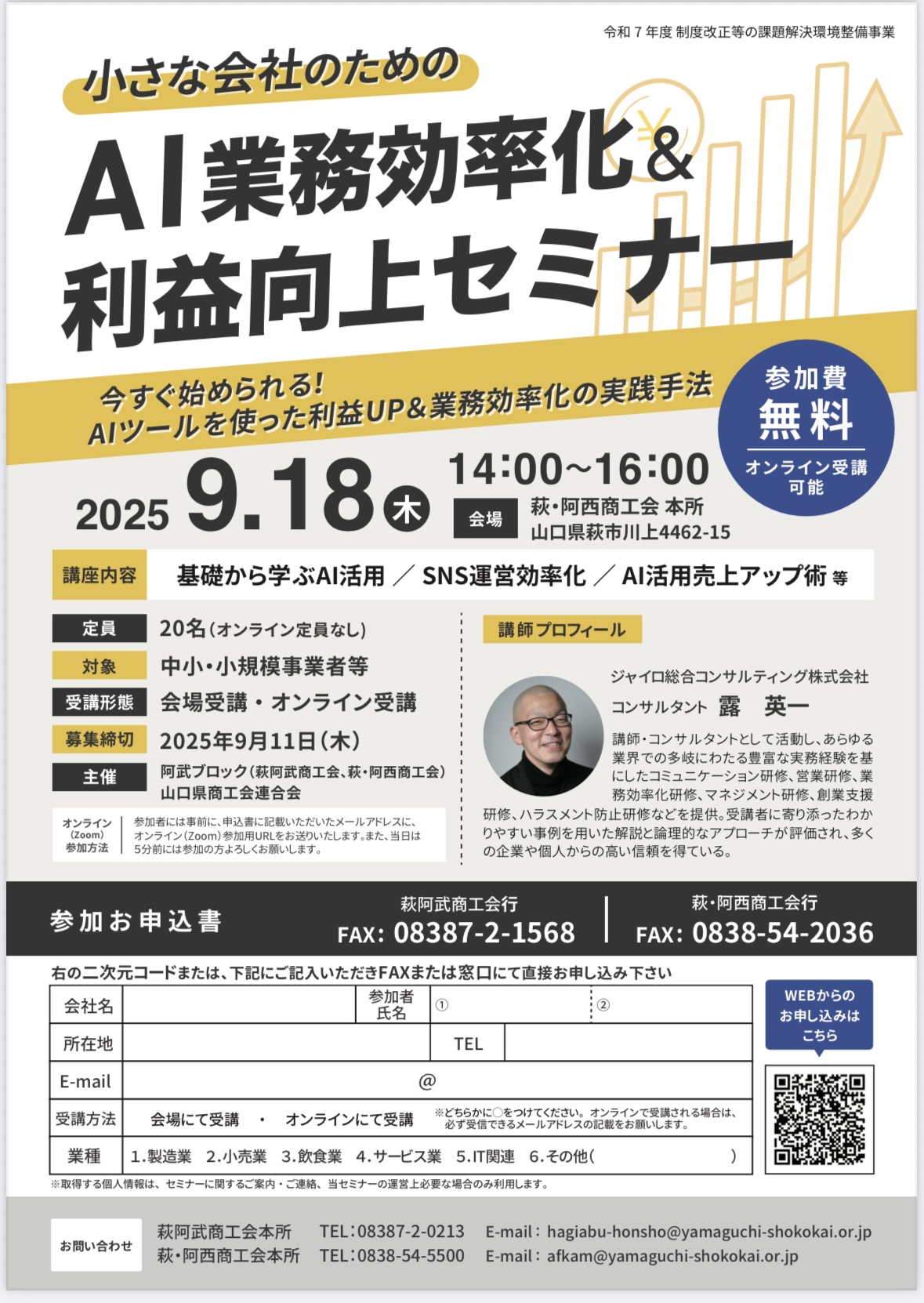 【萩阿武商工会 萩・阿西商工会 山口県商工会連合会主催】「2025年度 AIで業務効率化」開催のお知らせ