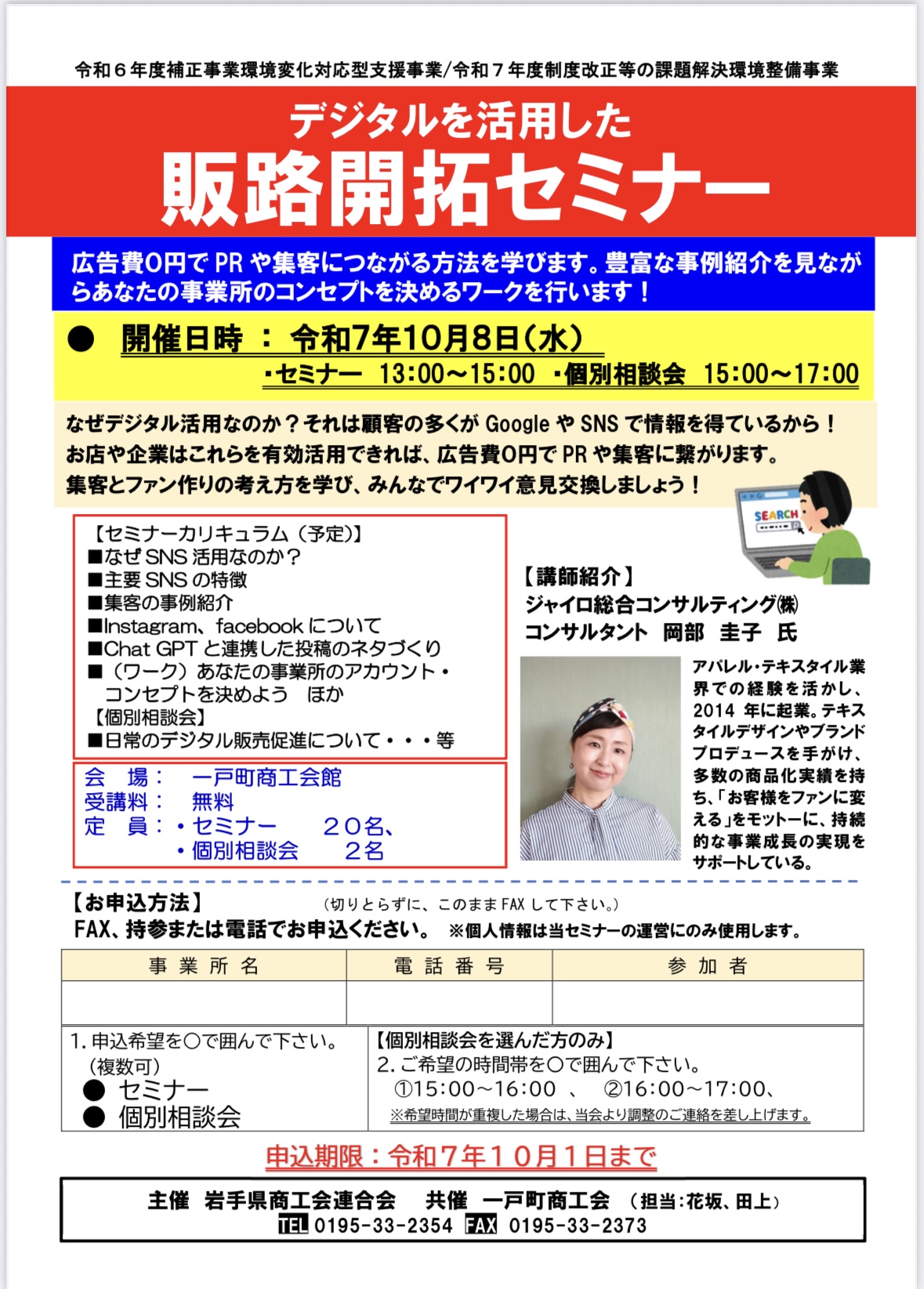 【岩手県商工会連合会主催・一戸町商工会共催】「2025年度デジタルを活用した販路開拓セミナー」開催のお知らせ