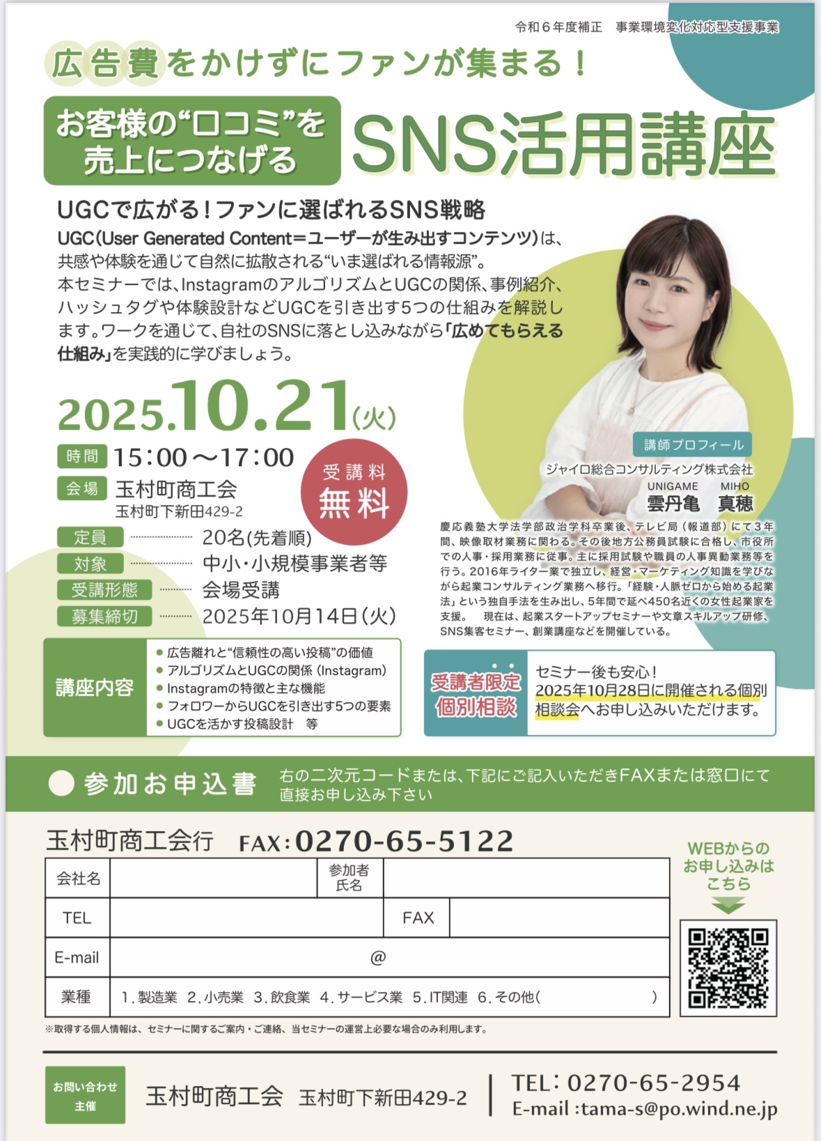 【玉村町商工会主催】「2025年度 SNS活用講座」開催のお知らせ