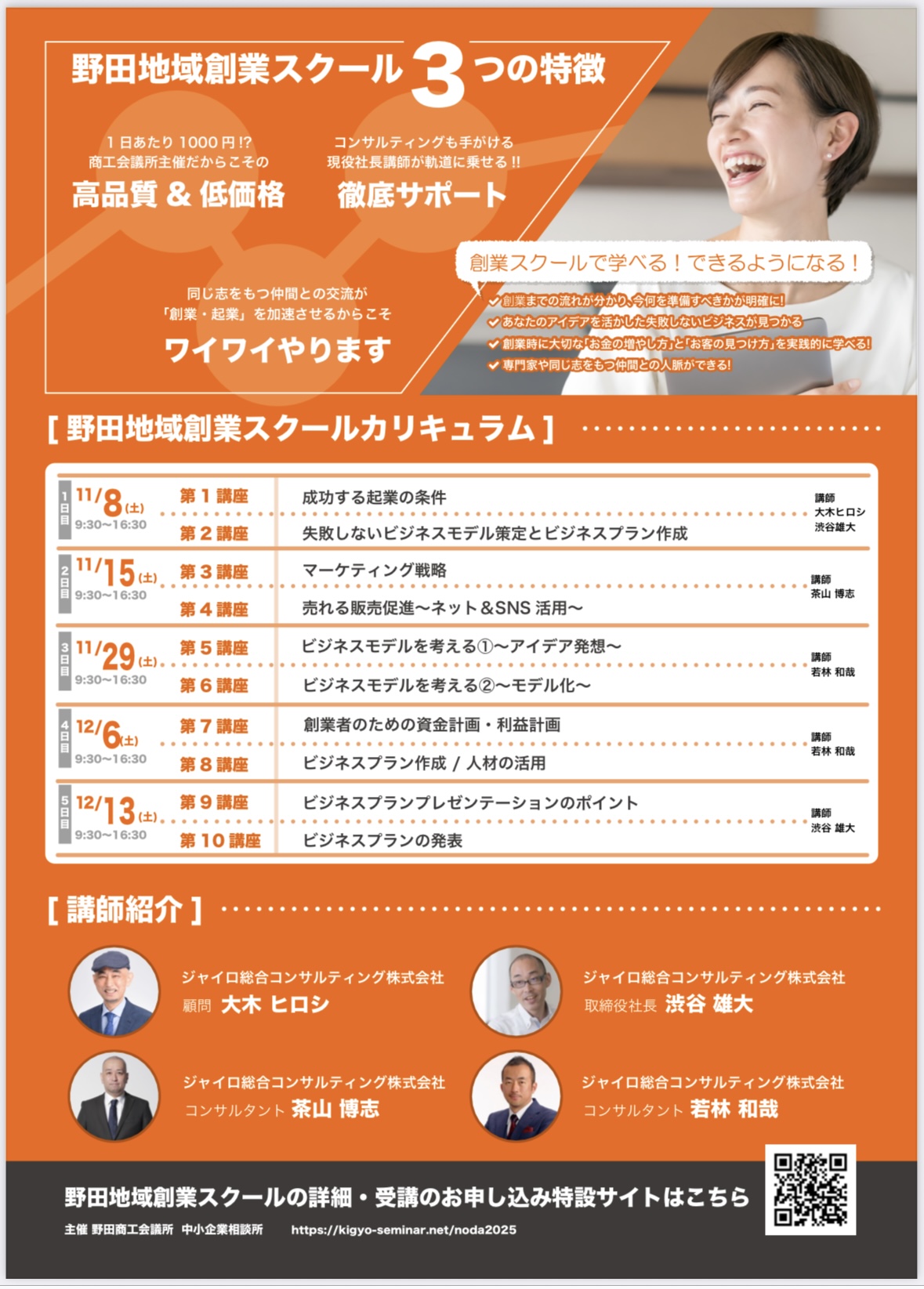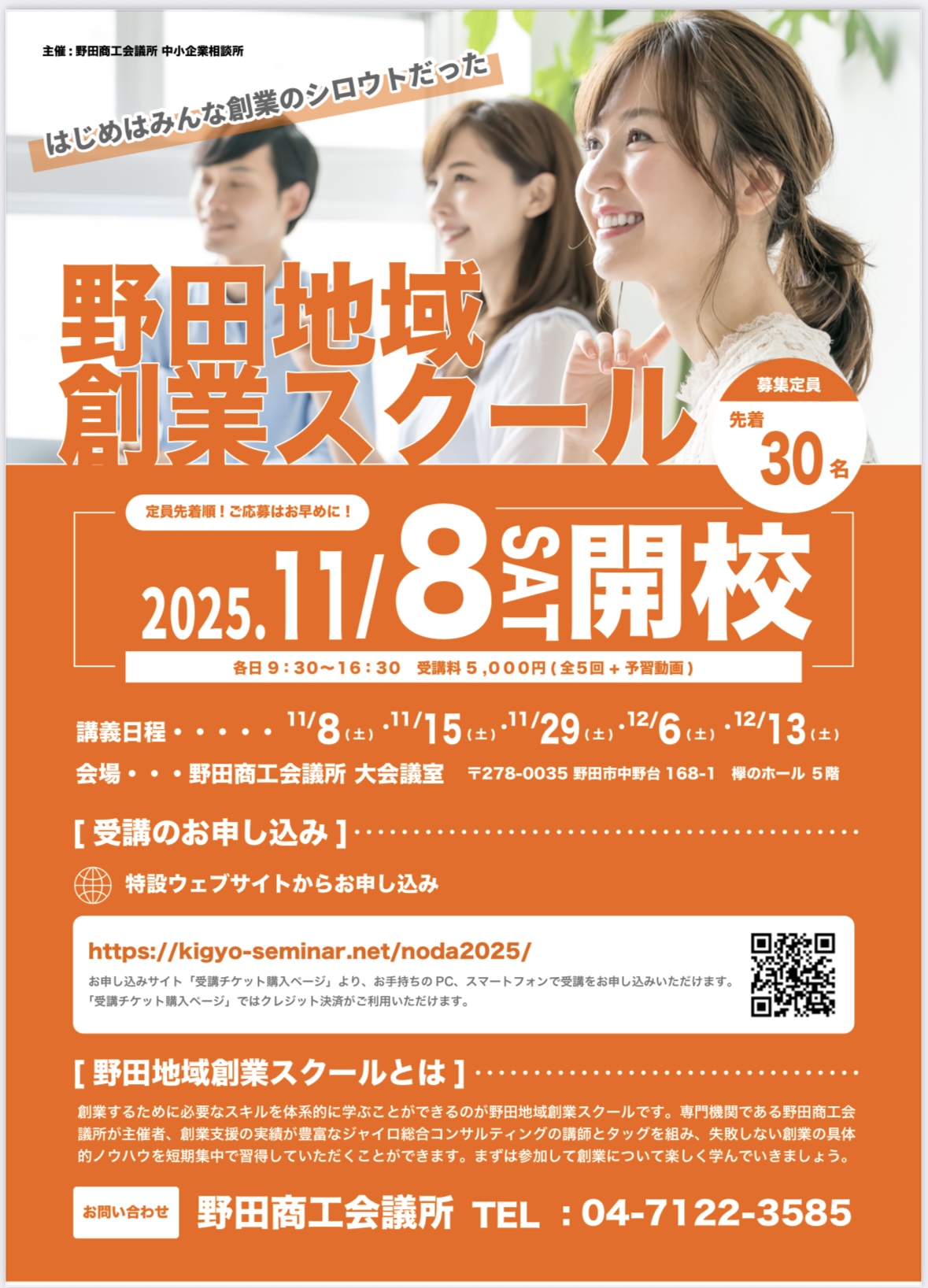 野田商工会議所| 日時 | 2025年11/8(土)・11/15(土)・11/29(土)・12/6(土)・12/13(土) 各日9:30〜16:30 |