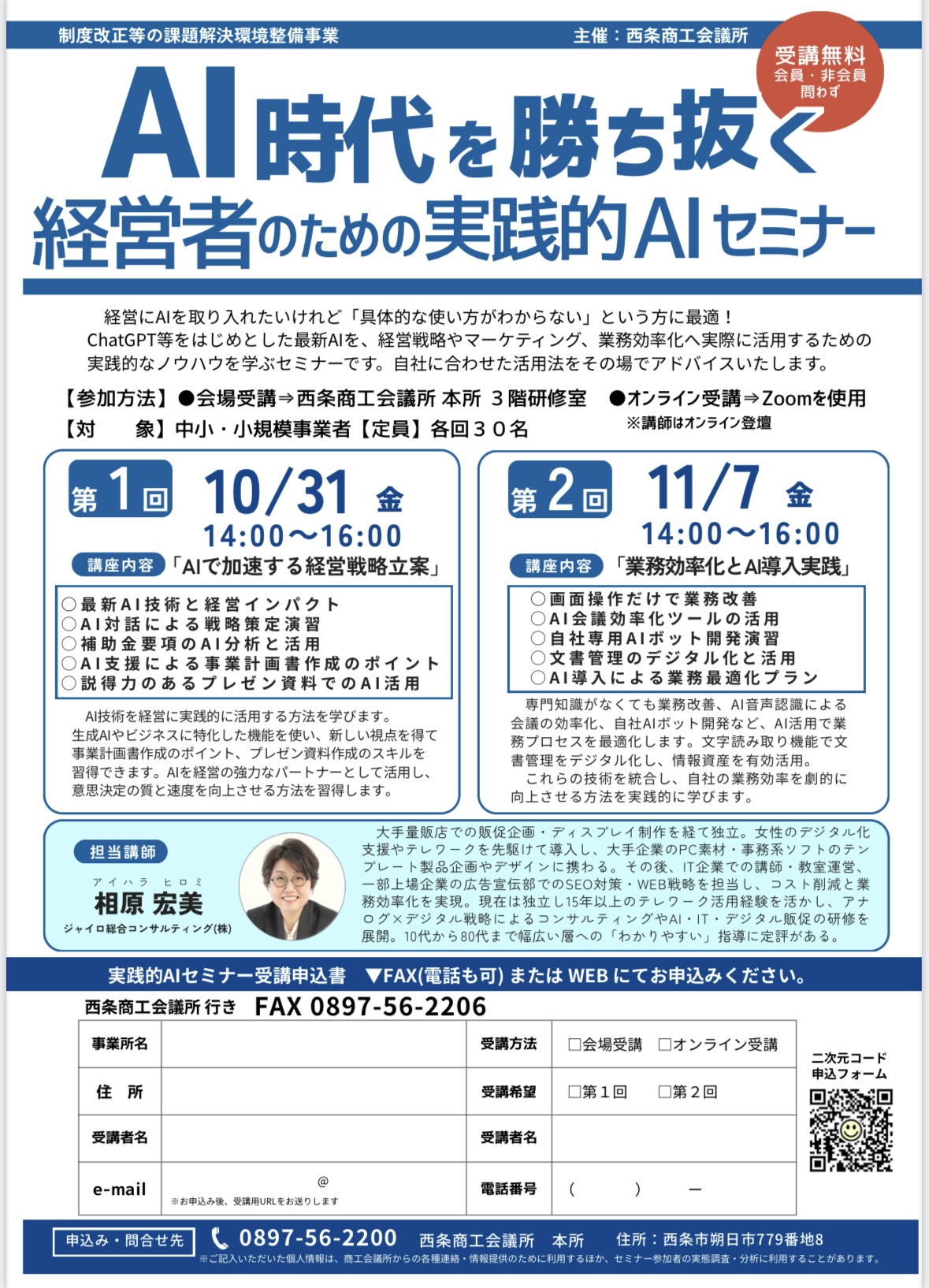 【西条商工会議所主催】「2025年度 AI時代を勝ち抜く 経営者のための実践的AIセミナー」開催のお知らせ