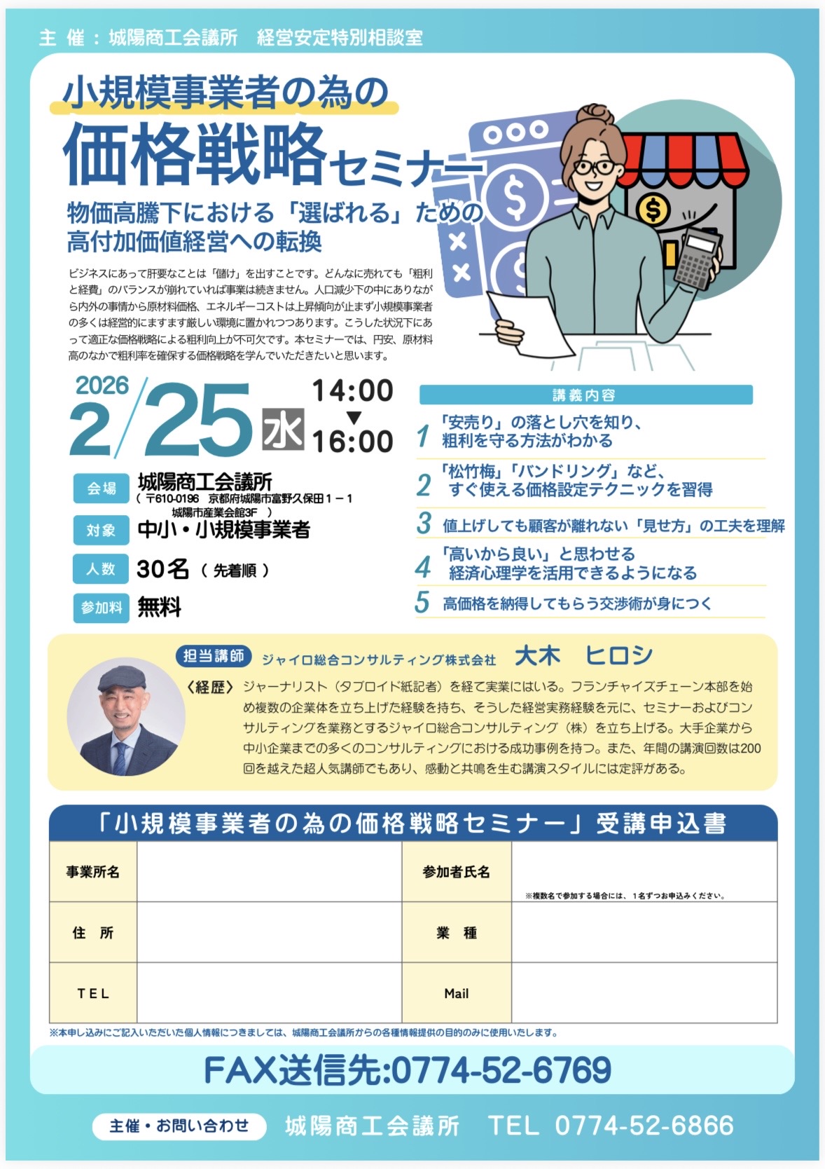 【城陽商工会議所主催】「2025年度 小規模事業者の為の価格戦略セミナー」開催のお知らせ