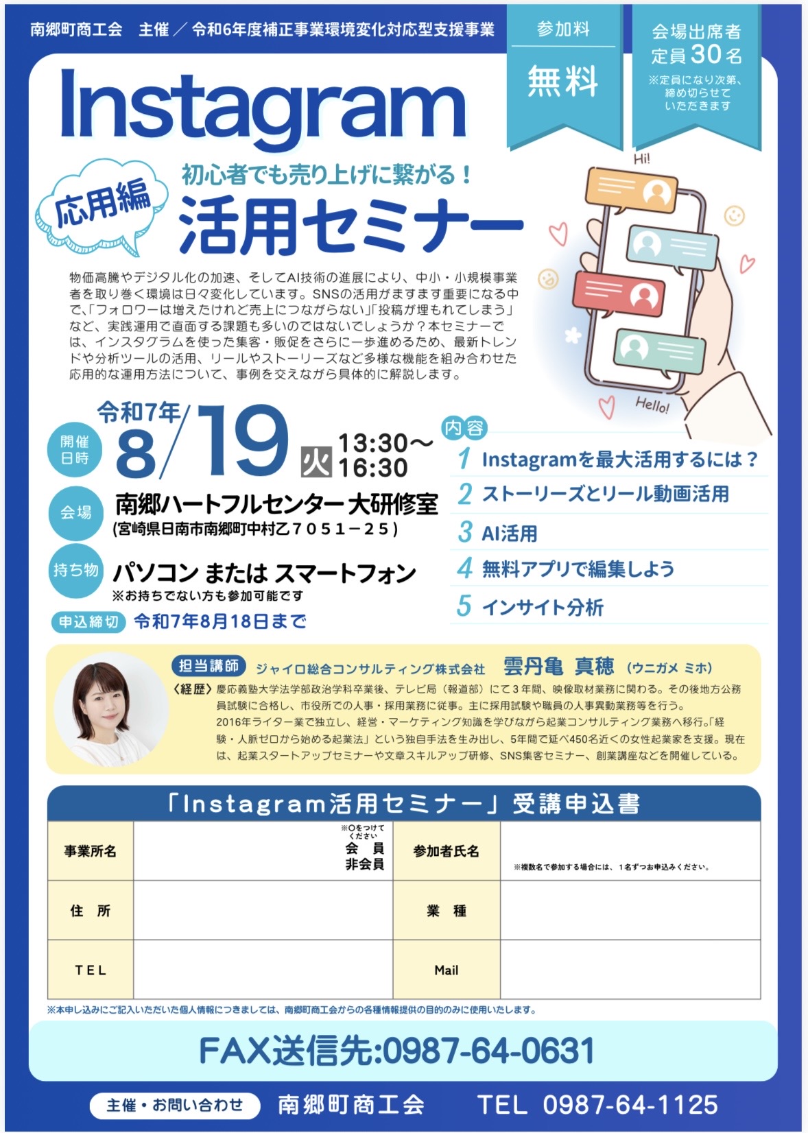 【南郷町商工会主催】「2025年度Instagram活用セミナー」開催のお知らせ