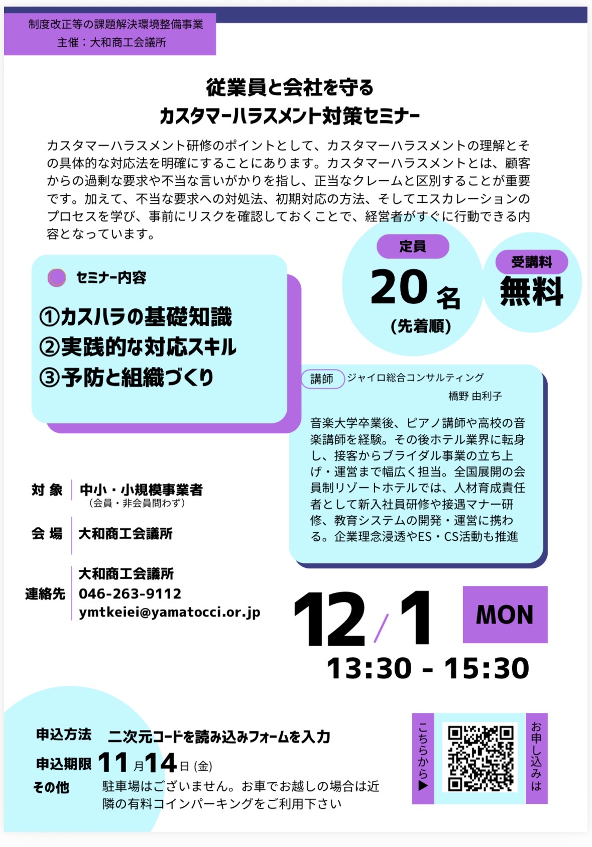 | お問い合わせ | 大和商工会議所 TEL:046-263-9112 |
