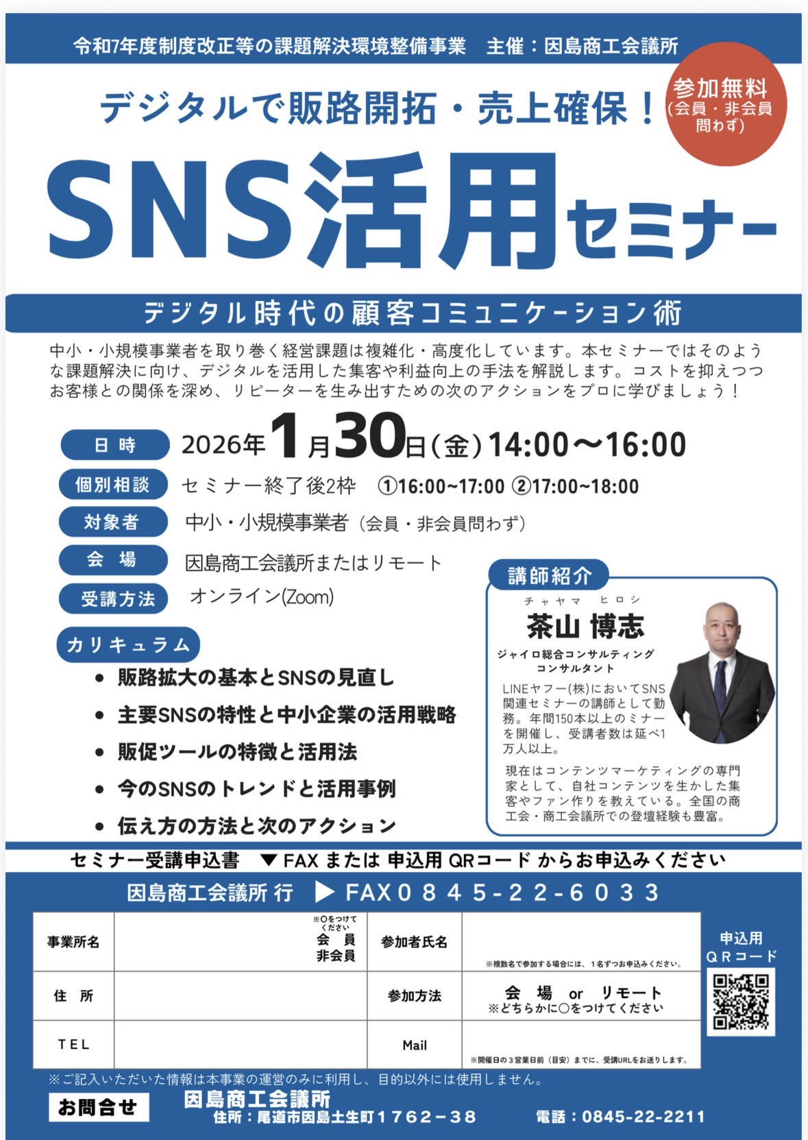 - 【因島商工会議所主催】「2025年度SNS活用セミナー」開催のお知らせ