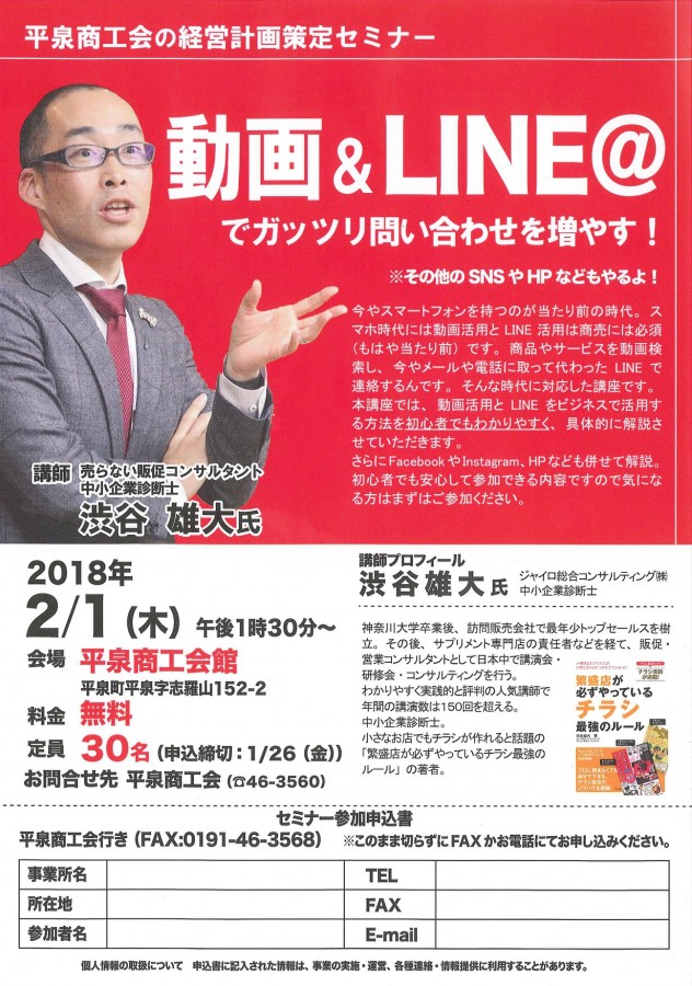 平泉商工会「経営計画策定セミナー」開催のお知らせ