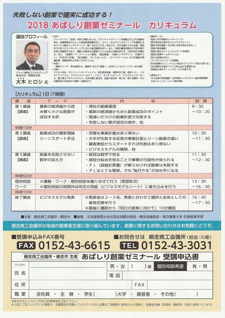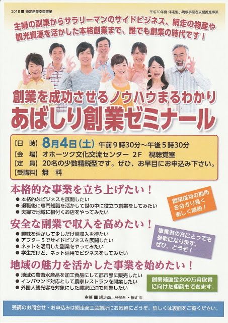 網走商工会議所「あばしり創業ゼミナール」開催のお知らせ