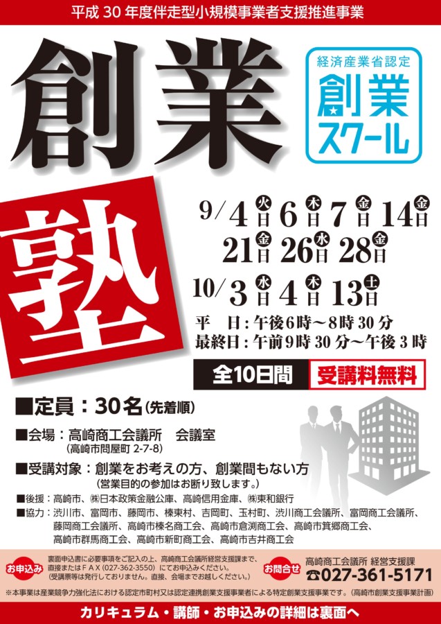 | お問い合わせ先 | 高崎商工会議所 経営支援課 TEL:027-361-5171 |