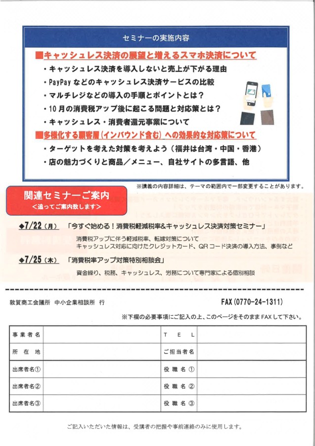 下記セミナーチラシにご記入の上、敦賀商工会議所FAX(0770-24-1311) にてお申込みください。