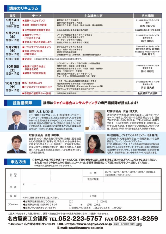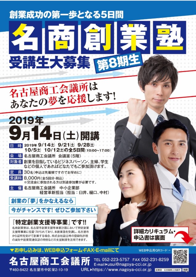 名古屋商工会議所「名商創業塾」開催のお知らせ