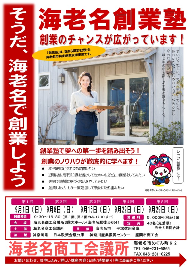 海老名商工会議所「海老名創業塾」開催のお知らせ