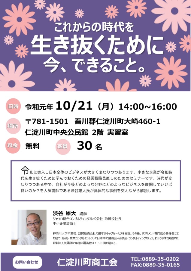 仁淀川町商工会「これからの時代を生き抜くために今、できること。」開催のお知らせ