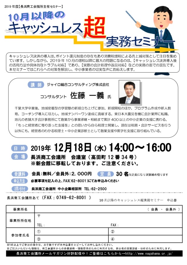 長浜商工会議所「10月以降のキャッシュレス超実務セミナー」開催のお知らせ