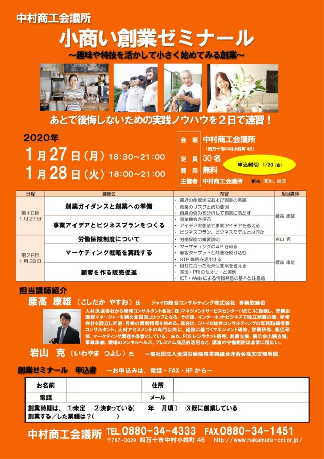 中村商工会議所「小商い創業ゼミナール」開催のお知らせ