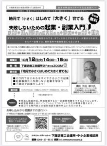 【下諏訪商工会議所主催】「2021年度 地元で「小さく」はじめて「大きく」育てる 失敗しないための起業・副業入門」開催のお知らせ
