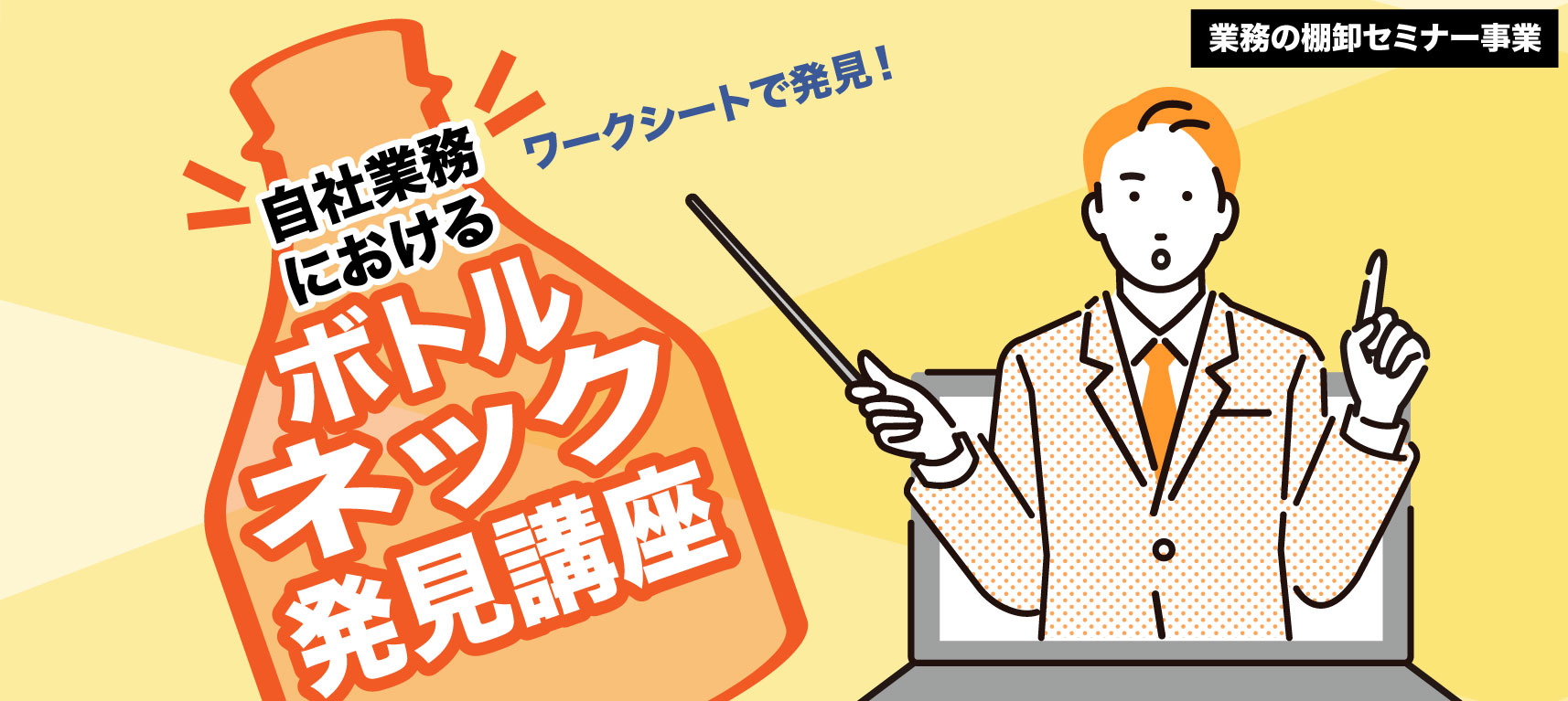 本講座では、業務の棚卸・切出しを行い、自社のボトルネックを把握することで、業務効率化・生産性向上の糸口を見出します。