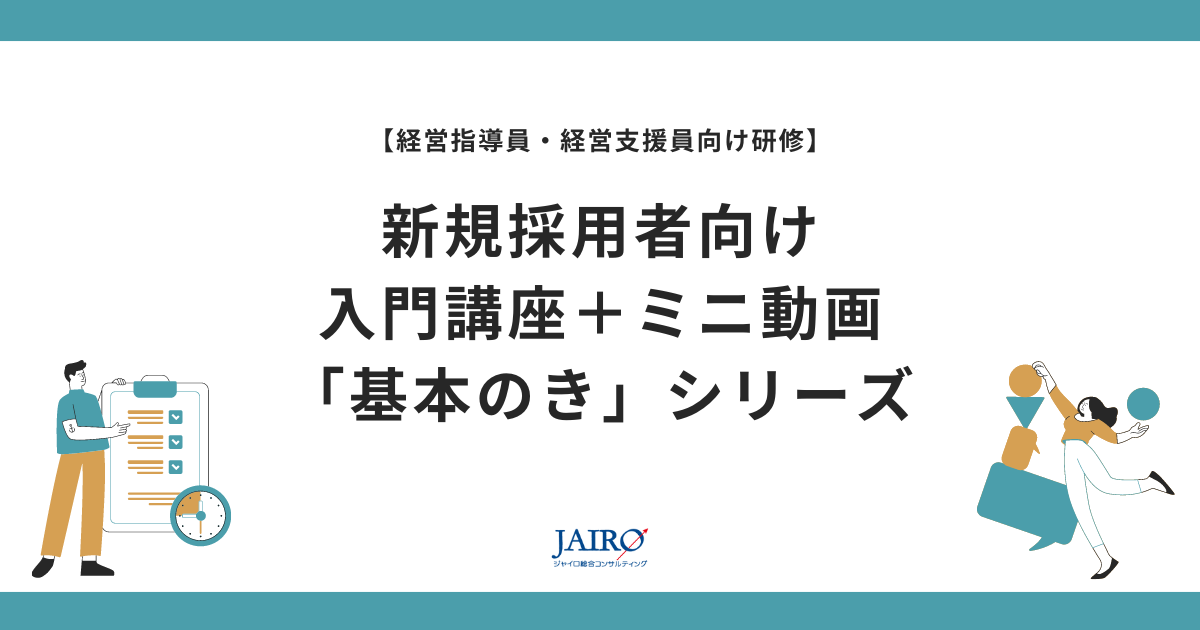 【経営指導員・経営支援員向け研修】新規採用者向け 入門講座+ミニ動画「基本のき」シリーズ
