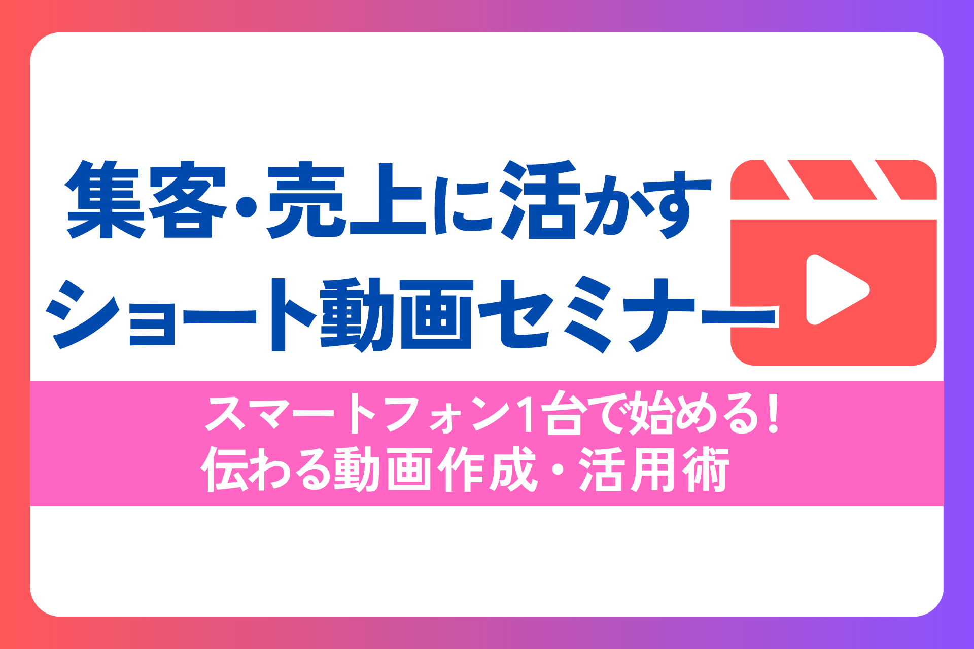 集客・売上に活かす!ショート動画セミナー 〜スマートフォン1台で始める!伝わる動画作成・活用術〜