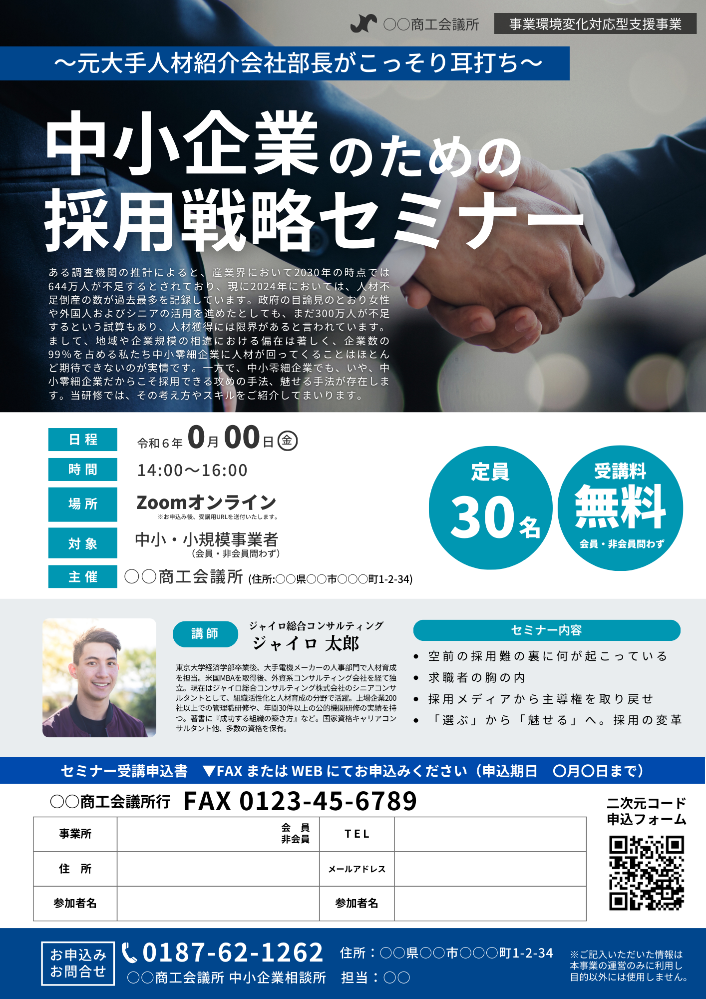 - 【石川県商工会連合会主催】「2025年度 小規模事業者のための “新”採用戦略セミナー」開催のお知らせ