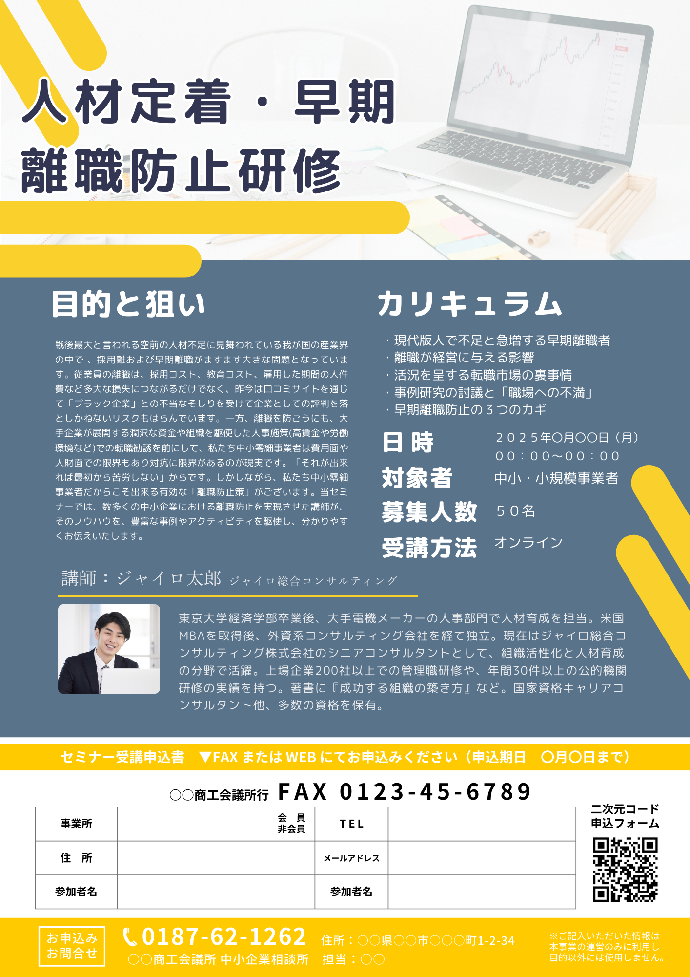 しかしながら、私たち中小零細事業者だからこそ出来る有効な「離職防止策」がございます。当セミナーでは、数多くの中小企業における離職防止を実現させた講師が、そのノウハウを、豊富な事例やアクティビティを駆使し、分かりやすくお伝えいたします。
