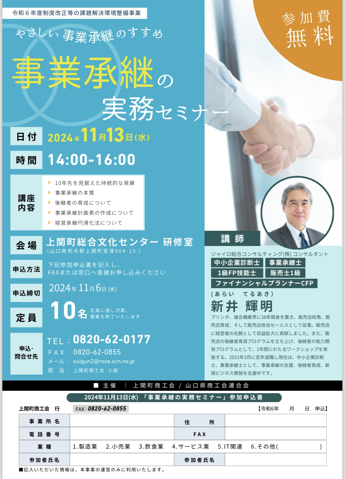 やさしい事業承継のすすめ 事業承継の実務セミナー 10年先を見据えた持続可能な事業発展のために