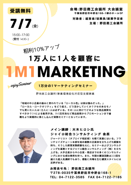 中小企業の差別化理論「1/10000マーケティング」のセミナーに関する情報が公開されました。全く新しい中小企業の成功理論についてのセミナー情報となっておりますので、ぜひご覧ください。