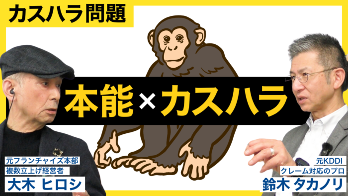 本対談では、フランチャイズチェーン本部の立ち上げを経験した大木ヒロシ会長と、クレーム対応のプロフェッショナル鈴木タカノリ講師が、ハラスメントの根源的な問題に切り込みます。