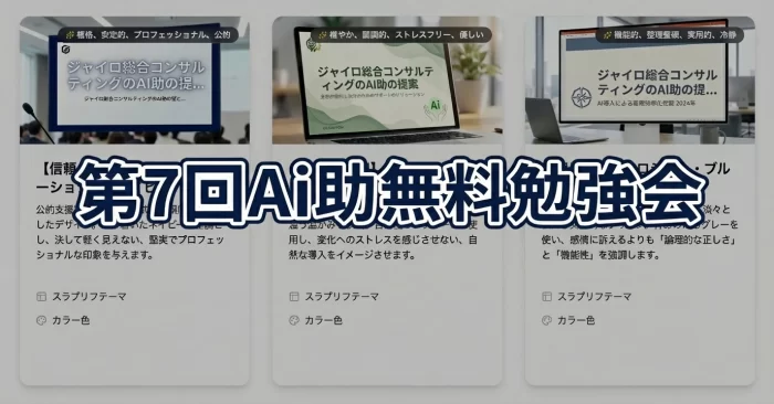 前回の勉強会では、Ai助の3つの画像生成機能を実際にデモンストレーションしました。